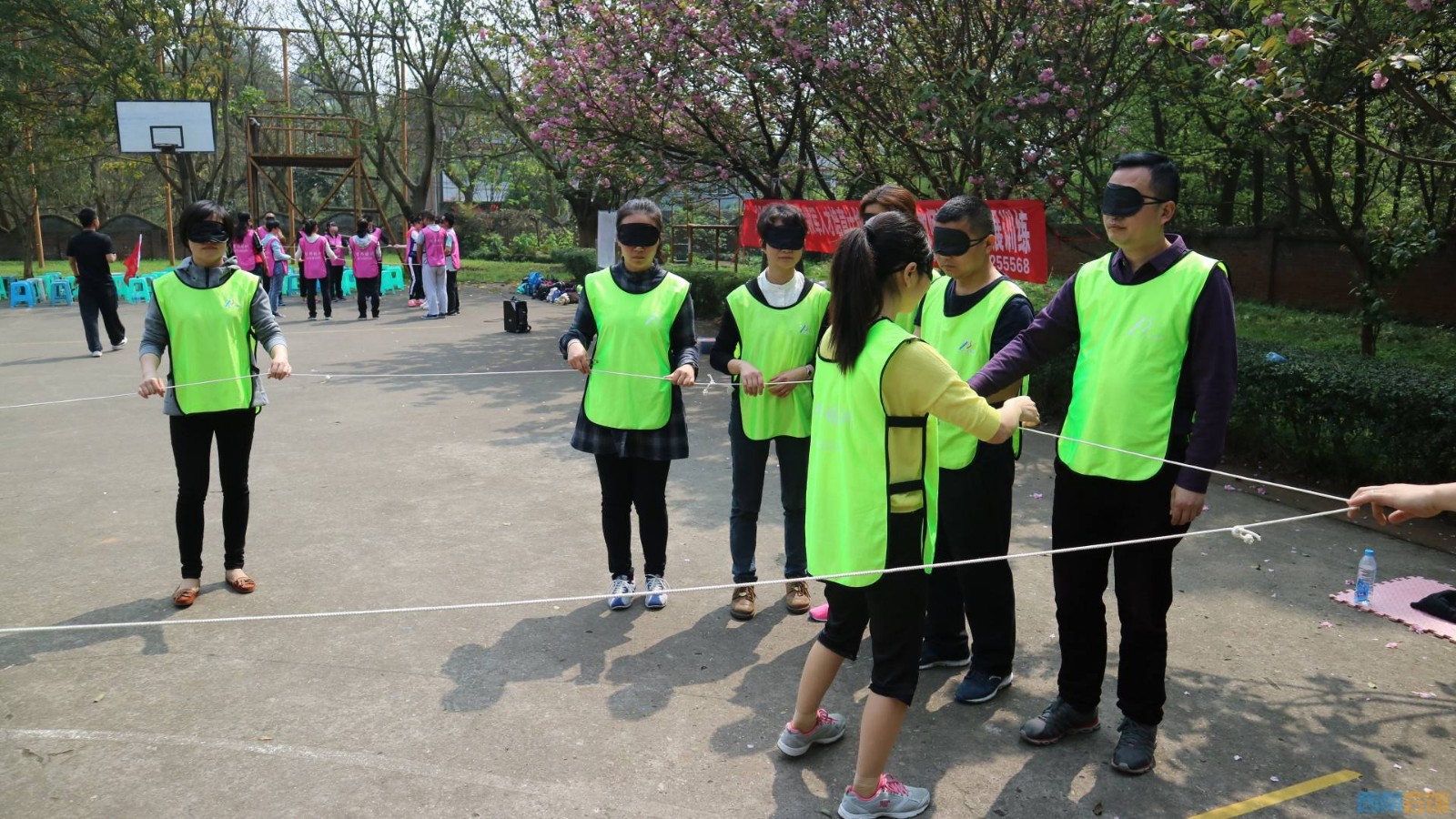 2、其他队员戴上眼罩;