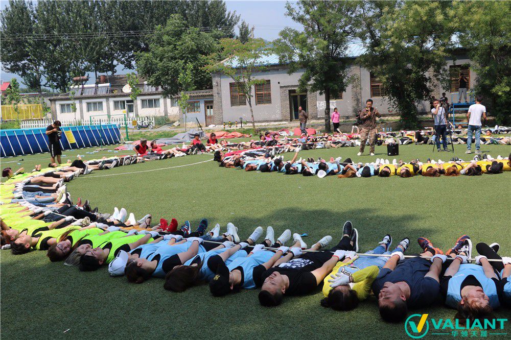 将拔河绳头尾相接,围成圆环,所有队员用双手抓起绳子,人与人之间间隙不要过大,双脚开列与肩同宽,后撤步姿势,所有队员一起往后拉,将绳圈绷直,让人和绳子组成一个圆圈,挑选进行绳圈行走的队员,同时行走的队员不得超过4人,完成绕绳圈一周行走的挑战,体重过大者不宜。