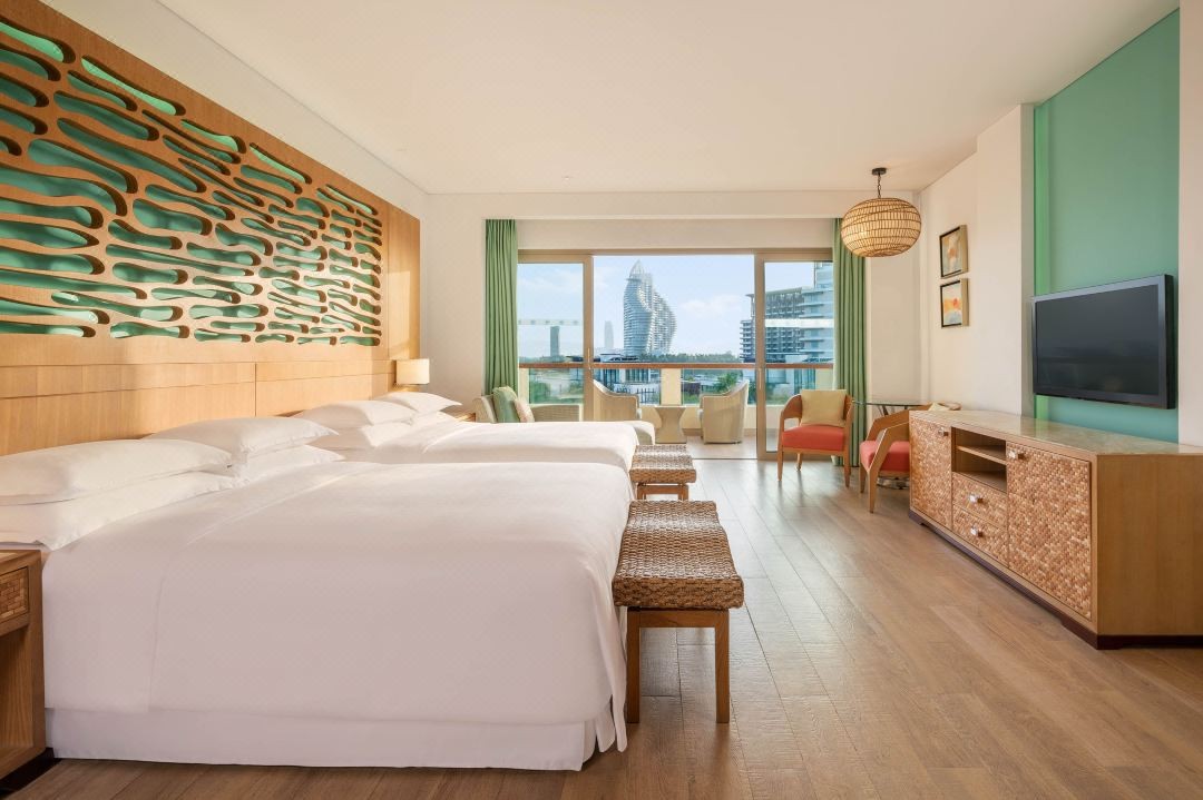酒店客房和套房均配备私人阳台,可饱览心旷神怡的海景、园林和泳池景观。海洋主题的4大2小家庭套房、小黄鸭和贝亲主题亲子房等各具特色。